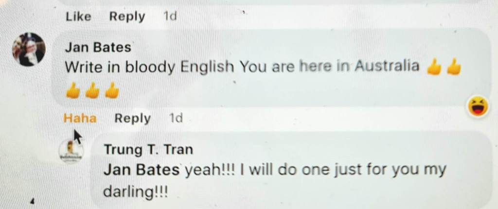 It is so embarrassed but funny when a respectful Aussie lady commented on one of my recent post: