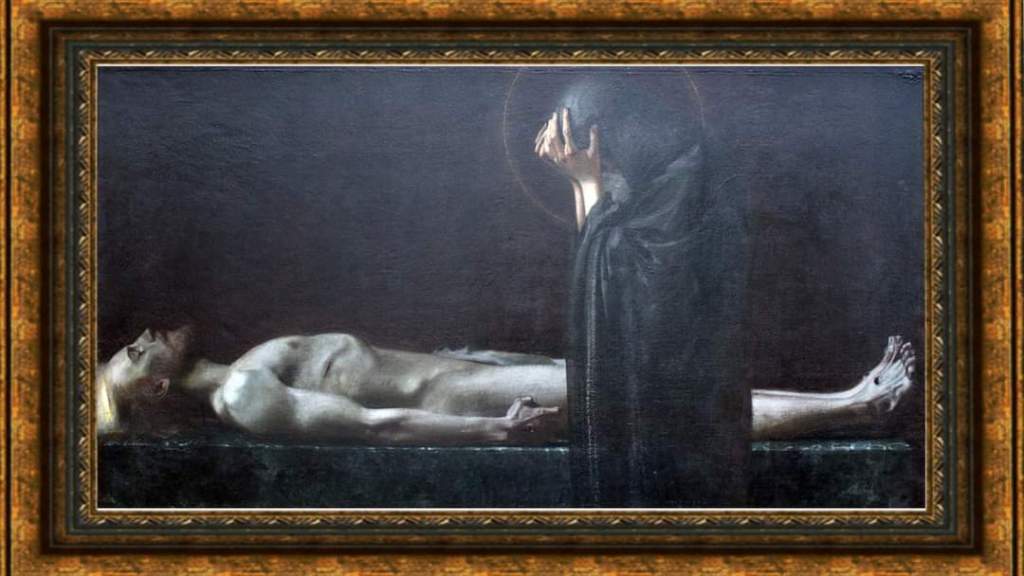 Nhìn vào bức tranh của họa sĩ Franz Von Stuck trong bảo tàng The Stadel Gallery tại Frankfurt, Germany (Nước Đức). Bức tranh Chúa nằm trong mồ với Đức Mẹ đau khổ đứng bên ôm mặt khóc. Hãy lặng thinh, đặt mình cũng đứng với Đức Mẹ trong khoảnh khắc này. Để mà thấy Chúa đã yêu mình dường nào.