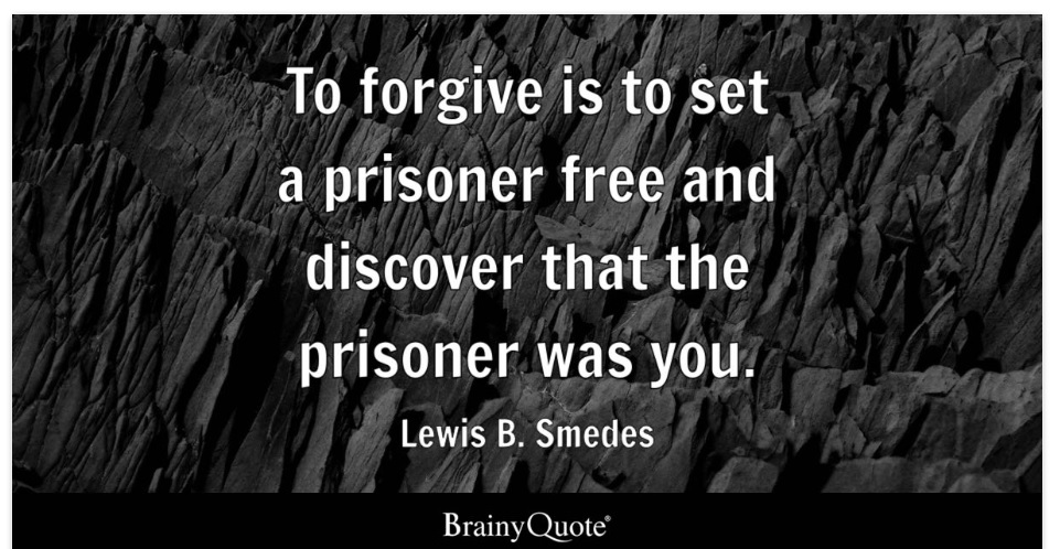 I remember a quote: “To forgive is to set a prisoner free and discover that the prisoner was you.” (Lewis B. Smedes)
