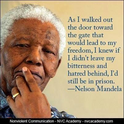 “Khi tôi bước ra cánh cổng dẫn tới tự do, tôi biết rằng, nếu tôi không để sự cay đắng và thù hận xuống thì tôi vẫn sẽ ở trong nhà tù.” – Nelson Mandela.
