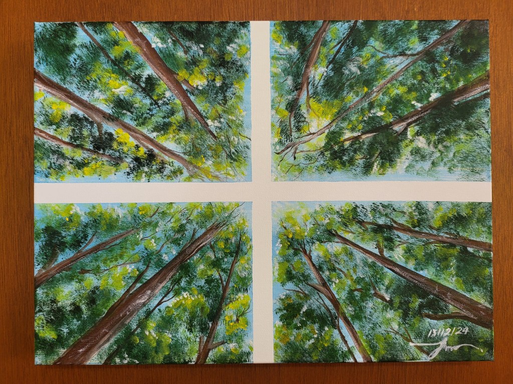 In the jungle, looking up to the sky, we can see the picturesque Canvas of nature.