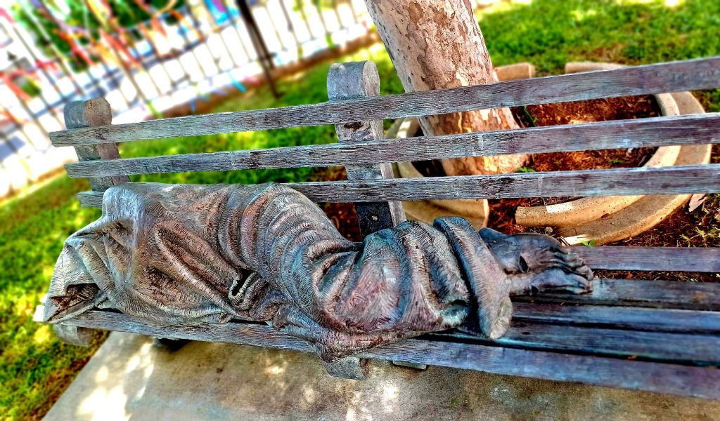 The sculpture of a life-size Christ figure shrouded in a blanket on a park bench is an internationally recognized symbol of compassion and awareness for the homeless with sculptures located in major cities throughout the world.