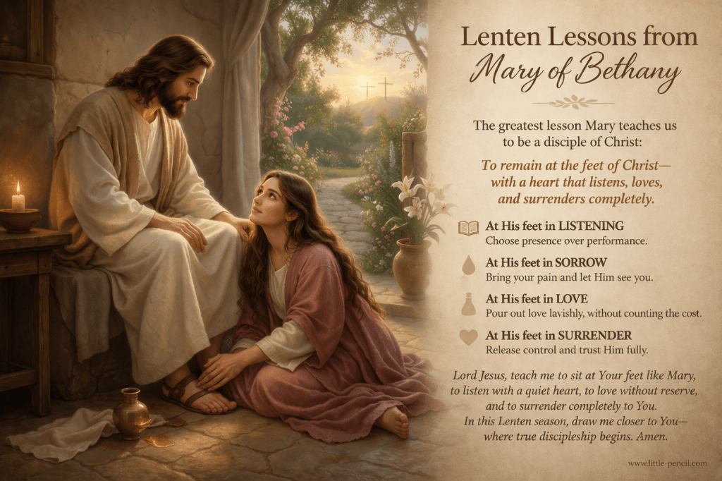 As we walk these forty days, may we learn from Mary to slow down, to love deeply, and to remain at the feet of Christ. It is the place where true life begins.